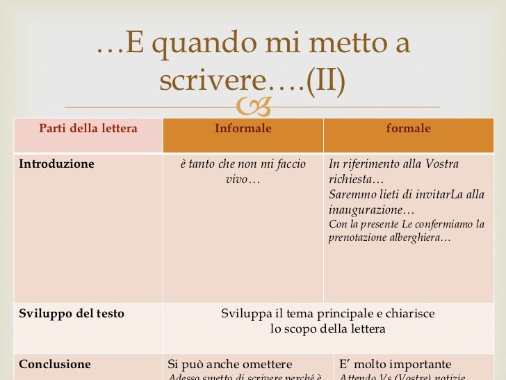 › scrittura › lettera-formaleLettera formale: come scrivere una lettera formale perfetta Jan 07, 2012 · Sul come scrivere una lettera formale abbiamo detto molto, ma anche le buste devono esser compilate nel giusto modo, per dare un tono professionale a tutta la tua comunicazione. Non esagerare con i colori nel testo. Anzi: a dire il vero, scrivere una lettera che sia effettivamente formale significa usare semplicemente il nero per i suoi testi.
