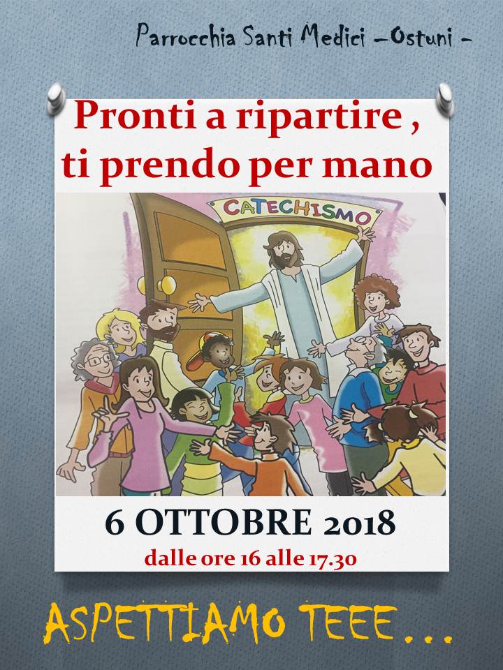 LETTERA AI GENITORI - INIZIO DELL'ANNO CATECHISTICO - San Nicola Quest'anno il CATECHISMO avrà inizio MERCOLEDI' 7 OTTOBRE seguendo il prospetto di questa tabella. Il 18 OTTOBRE GIORNATA MISSIONARIA MONDIALE, ALLE ORE 10.30 faremo l'inaugurazione ufficiale e sarà dato IL MANDATO ALLE CATECHISTE. CLASSI O GRUPPI. CATECHISTA I° ELEMENTARE MERCOLEDI' 15.00 - 16.00 Aula Superiore III° Cortile ...