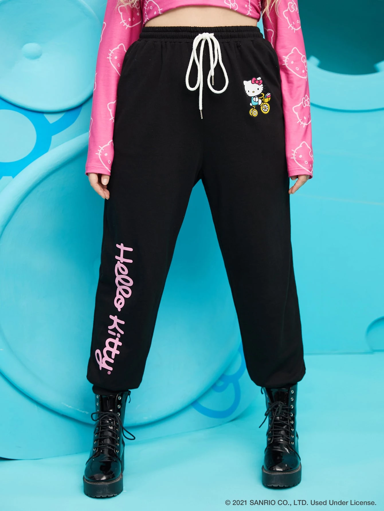 SHEIN X Hello Kitty and Friends Pantaloni sportivi con grafica fumetto e lettera con coulisse